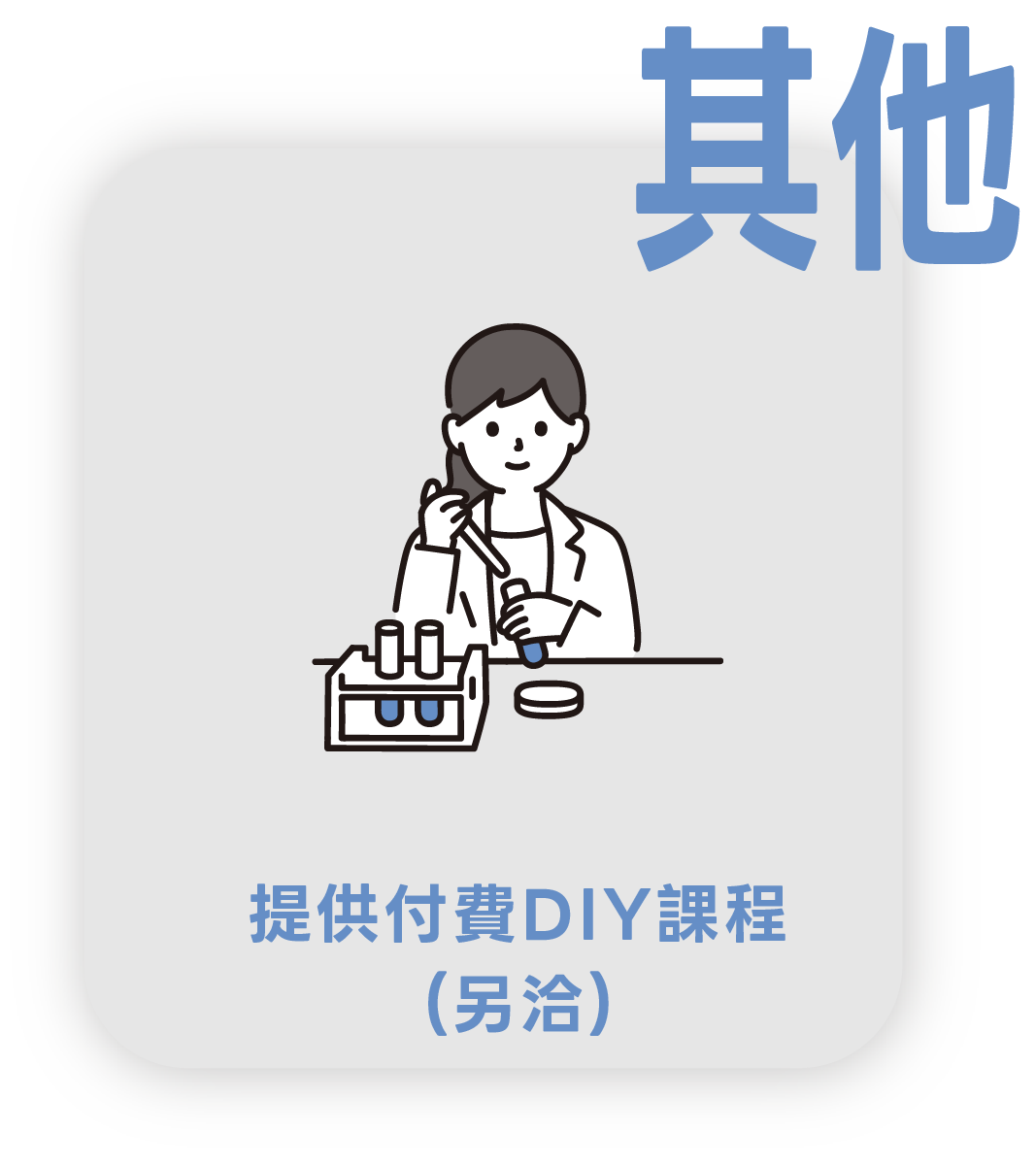 提供多元有趣的手作DIY體驗活動,跟著DIY小老師透過DIY的步驟,瞭解原料的功用與特色,並且體驗在實驗室調和產品的感覺,製造出屬於自己親自調配的產品。