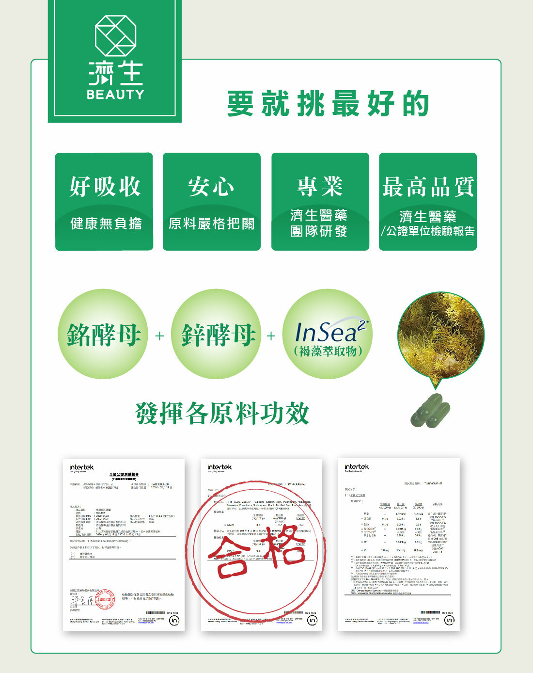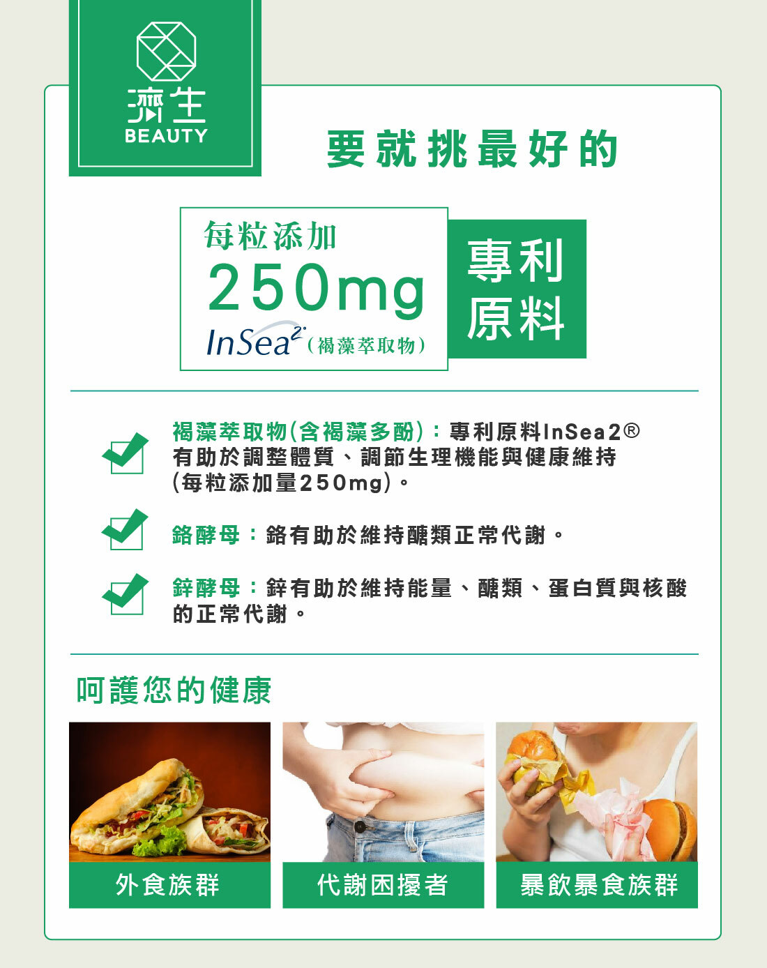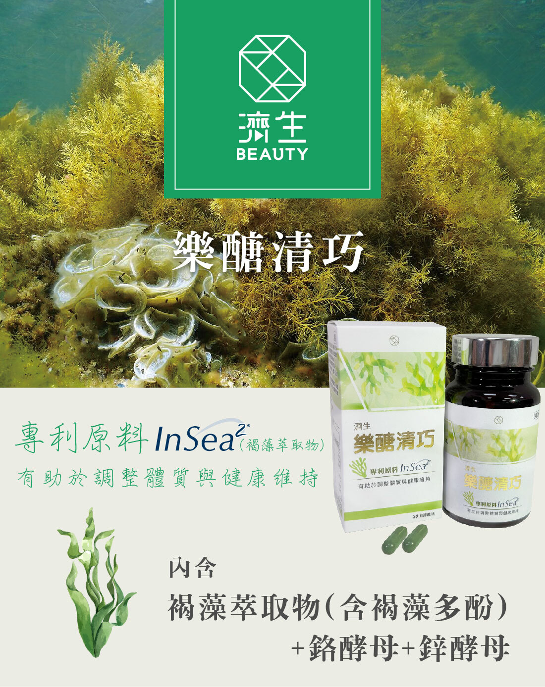 褐藻萃取物(含褐藻多酚):專利原料INSEA 2®有助於調整體質、調節生理機能與健康維持。