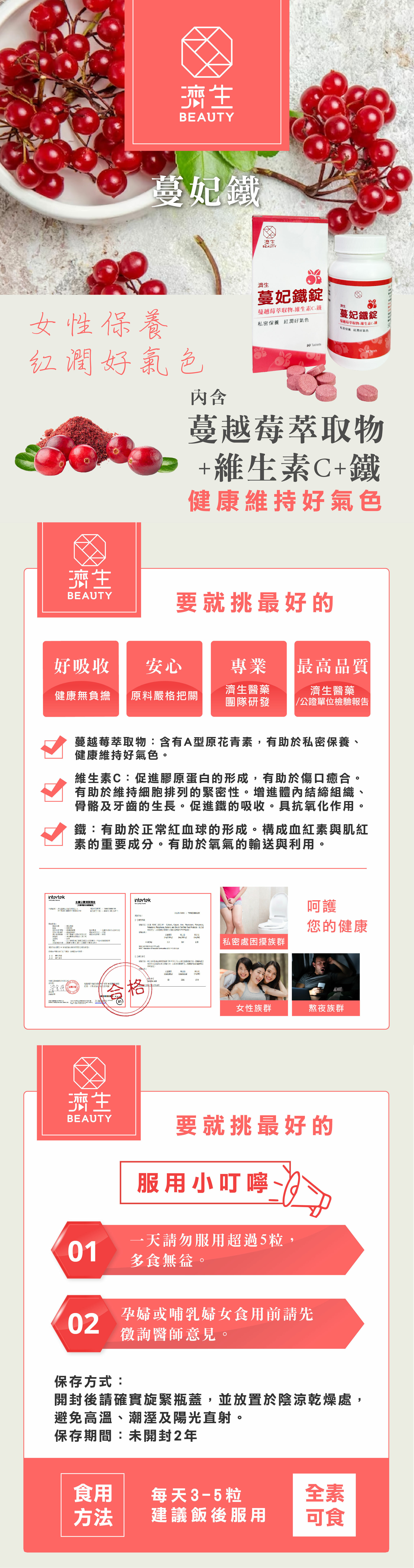 蔓越莓萃取物:含有A型原花青素,有助於私密保養、健康維持好氣色。